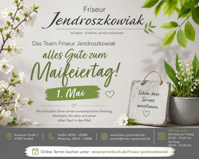 Am 01. März 2023 wurde der Salon schließlich in die dritte Generation übergeben. Andrea Jendroszkowiak führt das Familienunternehmen mit frischen Ideen und dem Anspruch weiter, Tradition und Moderne harmonisch zu verbinden.